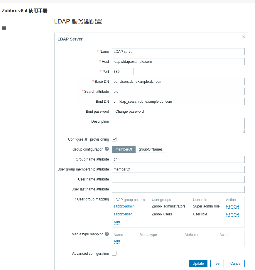 绑定DN=cn=admin,dc=localdomain,dc=com``